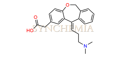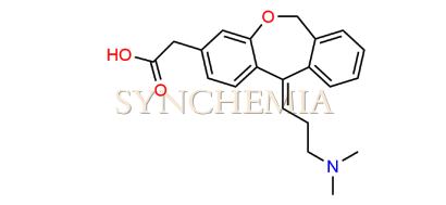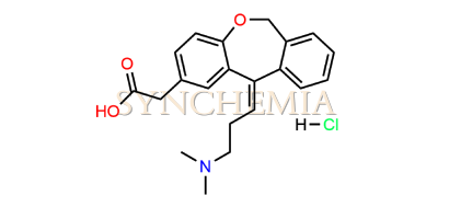 Olopatadine USP Related Compound C | CAS NO: 55453-87-7 also known as Olopatadine USP Related Compound C its chemical | IUPAC name is 2-(11-oxo-6,11-dihydrodibenzo[b,e]oxepin-2-yl)acetic acid. Olopatadine USP Related Compound C is potential impurity of Olopatadine Hydrochloride. Olopatadine is an antihistamine used primarily for its effects in treating allergy symptoms. Allergic Conjunctivitis: Olopatadine is commonly used in eye drop form to relieve symptoms of allergic conjunctivitis, such as itching, redness, and swelling of the eyes caused by allergens. Seasonal Allergies: It is also used to manage symptoms of seasonal allergic rhinitis, like sneezing, runny nose, and itching. Synchemia Research chemical is manufacturer and eres to regulatory guidelines, ensuring its suitability for pharmaceutical QC applications