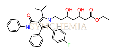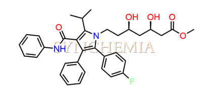 Atorvastatin EP Impurity B | CAS NO: 842103-12-2, also known as Atorvastatin EP Impurity B its chemical | IUPAC name is Sodium (3RS,5SR)-7-[2-(4-fluorophenyl)-3-phenyl-4-(phenylcarbamoyl)-5-(propan-2-yl)-1H-pyrrol-1-yl]-3,5-dihydroxyheptanoic acid. Atorvastatin EP Impurity B is potential impurity of Atorvastatin. It helps reduce levels of low-density lipoprotein (LDL) cholesterol and total cholesterol, which can help prevent cardiovascular disease. It’s often prescribed to lower the risk of heart attack and stroke in individuals with high cholesterol or those with risk factors for heart disease. Synchemia Research chemical is manufacturer and Supplier of Atorvastatin EP Impurity B with comprehensive characterization data that adheres to regulatory guidelines, ensuring its suitability for pharmaceutical QC applications.