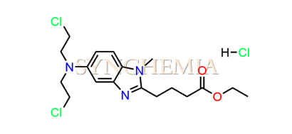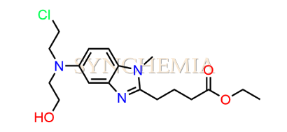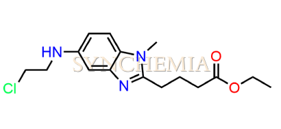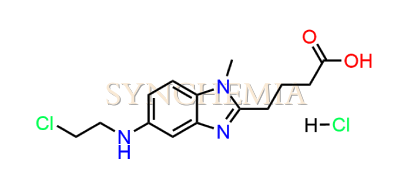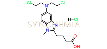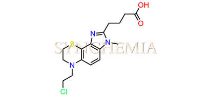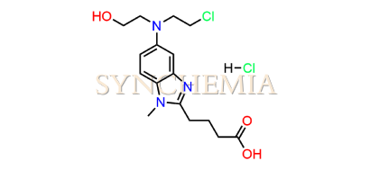 Bendamustine USP Related Compound D | CAS NO: 1797881-48-1, also known as Bendamustine USP Related Compound D its chemical | IUPAC name is 4-{5-[(2-Chloroethyl)amino]-1-methyl-1H-benzimidazol-2-yl}butanoic acid hydrochloride. Bendamustine USP Related Compound D is potential impurity of Bendamustine. Bendamustine works by interfering with the growth and spread of cancer cells. It's usually administered intravenously, and its side effects can include nausea, fatigue, and a risk of infection due to its effects on bone marrow. Synchemia Research chemical is manufacturer and Supplier of Bendamustine USP Related Compound D with comprehensive characterization data that adheres to regulatory guidelines, ensuring its suitability for pharmaceutical QC applications.