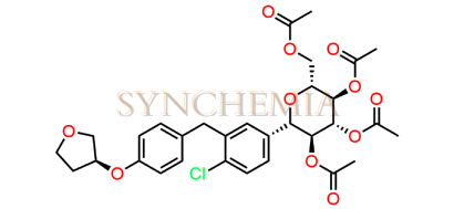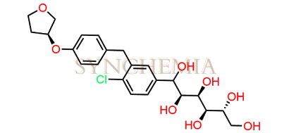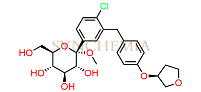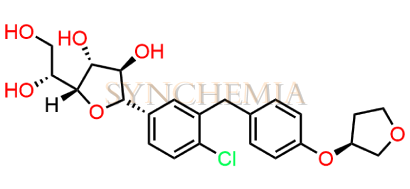 Empagliflozin S-Furanose CAS NO: 1620758-32-8 chemically represented as (2S,3R,4R,5R)-2-(4-Chloro-3-(4-(((S)-tetrahydrofuran-3-yl)oxy)benzyl)phenyl)-5-((R)-1,2-dihydroxyethyl)tetrahydrofuran-3,4-diol . Empagliflozin S-Furanose is supplied with comprehensive characterization data, in full compliance with applicable regulatory guidelines. Synchemia is the leading supplier and exporter of Empagliflozin S-Furanose . All Synchemia products are strictly intended for analytical testing purposes only and not for human use.