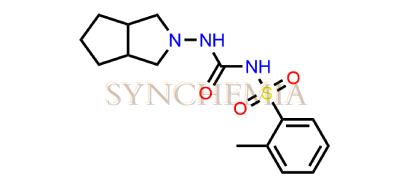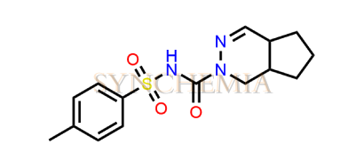 Gliclazide EP Impurity E | CAS NO: NA, also known as Gliclazide EP Impurity E its chemical | IUPAC name is 1-[(4-Methylphenyl)sulfonyl]-3-(3,3a,4,6a-tetrahydrocyclopenta[c]pyrrol-2(1H)-yl)urea. Gliclazide EP Impurity E is potential impurity of Gliclazide. Gliclazide helps control blood sugar levels by stimulating the pancreas to produce more insulin. Synchemia Research chemical is manufacturer and Supplier of Gliclazide EP Impurity E with comprehensive characterization data that adheres to regulatory guidelines, ensuring its suitability for pharmaceutical applications.