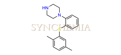 Vortioxetine Impurity 2 | CAS NO: 1293342-89-8, also known as Vortioxetine Impurity 2 HCl salt its chemical | IUPAC name is 1-(2-(m-Tolylthio)phenyl)piperazine hydrochloride. Vortioxetine Impurity 2 is potential impurity of Vortioxetine. Vortioxetine The primary focus in clinical practice and research is usually on vortioxetine itself rather than its metabolites. However, understanding these metabolites can be important for pharmacokinetic studies, which explore how the body absorbs, distributes, metabolizes, and excretes a drug.Synchemia Research chemical is manufacturer and Supplier of Vortioxetine Impurity 2 with comprehensive characterization data that adheres to regulatory guidelines, ensuring its suitability for pharmaceutical QC applications.