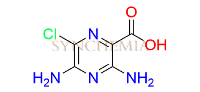 Amiloride EP Impurity B CAS NO: 4878-36-8 chemically represented as 3,5-Diamino-6-chloropyrazine-2-carboxylic acid.It is also known as Amiloride Acid (USP). Synchemia is the leading supplier and exporter Amiloride EP Impurity B.We supply Amiloride EP Impurity B with detailed characterization data compliance with regulatory guidelines.