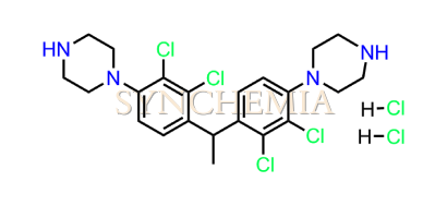 Aripiprazole Impurity 46 | CAS NO: 519138-48-8 also known as Aripiprazole Impurity 46 Dihydrochloride its chemical | IUPAC name 1,1'-(ethane-1,1-diylbis(2,3-dichloro-4,1-phenylene))dipiperazine dihydrochloride. Aripiprazole is mainly used to treat various mental health conditions the treatment of schizophrenia, a mental disorder characterized by distorted thinking. Synchemia Research chemical is manufacturer and Supplier of Aripiprazole Impurity 46 with comprehensive characterization data that adheres to regulatory guidelines, ensuring its suitability for pharmaceutical QC applications.